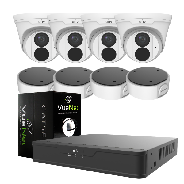 Get the core essentials for an easy setup with the PRO direct Surveillance Bundle. Choose from 4 or 8 UNV 5MP ColourHunter Turret Cameras for clear, full colour images in any lighting. Includes matching mounts and a powerful NVR with 2-10TB storage. Easy setup with 100m CAT5 cable or 20m pre-made leads upon request.