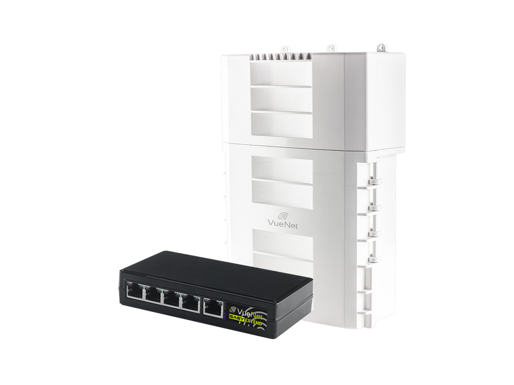 VueNet EasyExtend 4 Port - External PoE Powered Range Extender +130M